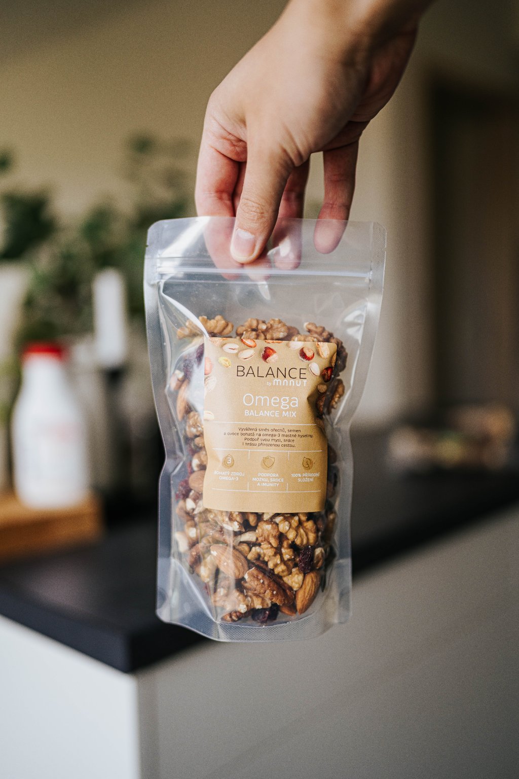 Omega Balance Mix je navržený pro ty, kdo chtějí pečovat o své zdraví zevnitř i navenek. Pečlivě vybrané ořechy, semínka a sušené ovoce tvoří harmonickou kombinaci bohatou na omega-3 mastné kyseliny, které přispívají k normální činnosti srdce, mozku a zraku.